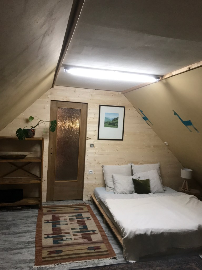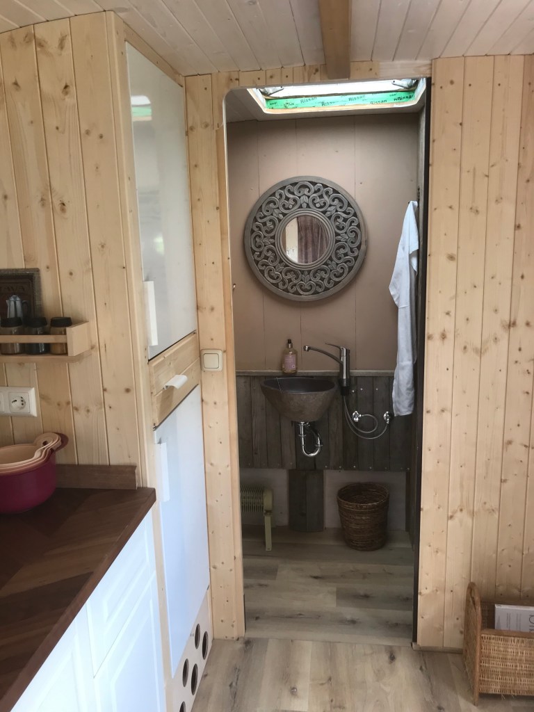 Die Unterkunft stand ursprünglich als Aufenthaltsraum bei einer Erdölbohrstelle im Marchfeld, später wurde sie als Umzugswagen benützt, bis wir ihr Potenzial zu einem Tiny House auf Rädern entdeckt haben. Vom einstmaligen Bauwagen blieb nur das Gerüst, alles andere wurde von uns geplant, eingerichtet und ausgestattet.