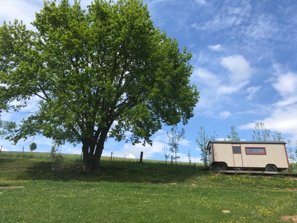 Gäste finden den Bauwagen nun als Unterkunft, der es an keinem (kleinem) Luxus mangelt. Inmitten der Lamawiese, hat er ein idyllisches Plätzchen auf der Farm bekommen.